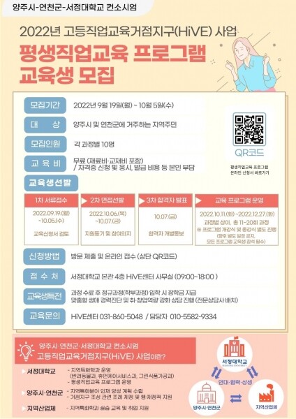 조명희 양주시 평생교육진흥원장은 “이번 평생직업교육과정을 통해 지역인재를 양성하고 맞춤형 교육으로 취업률이 향상될 것으로 기대한다”며 “시민들의 많은 관심과 참여 부탁드린다”고 말했다.