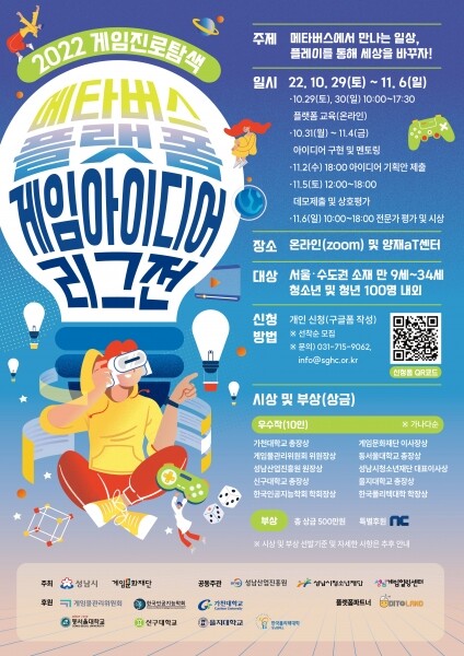 ‘메타버스에서 만나는 일상, 플레이를 통해 세상을 바꾸자’를 주제로 하는 이번 리그전은 학생과 청년들에게 게임 제작과 진로 탐색의 기회를 제공하기 위해 성남시와 게임문화재단이 공동 주최해 마련하는 행사다.