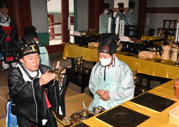 [뉴스서울] 이재준 수원특례시장이 28일 수원향교 대성전에서 봉행된 ‘2022년 추기 석전대제에서 초헌관 역할을 했다.