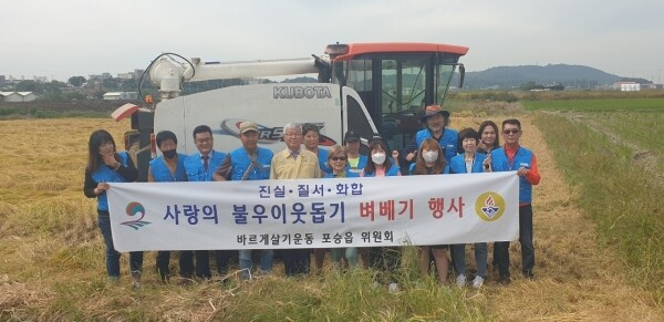 포승읍 바르게살기위원회는 생활이 어려운 이웃을 돕기 위해 매년 휴경농지를 임차해 봄에 모를 심고 가을철에 벼를 수확해 오고 있다.