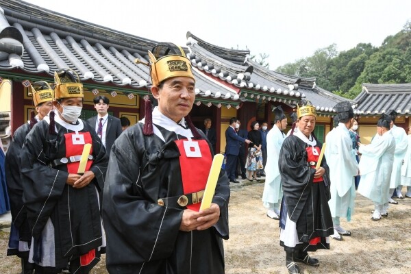 이날 봉행은 전폐례를 시작으로 초헌관·아헌관·종헌관이 차례로 공자 등 오성에게 술을 따르는 전작, 분헌관이 오성을 제외한 성현들에게 술을 올리는 분헌례에 이어 음복례, 망료례 순으로 진행했다.