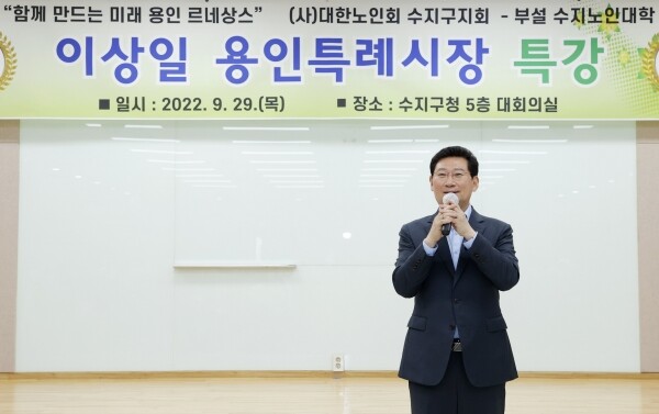 피카소의 비서였던 하이메 사바르테스는 피카소는 길바닥에 굴러다니는 돌에서도 영감을 얻었다는 말을 남겼는데 그만큼 창조성이 남달랐습니다”이상일 용인특례시장이 29일 수지구 풍덕천동 수지구청 대회의실에서 대한노인회 용인시 수지구지회 부설 수지노인대학 수강생 150명을 대상으로 ‘스토리가 있는 그림의 세계’를 주제로 특강을 했다.