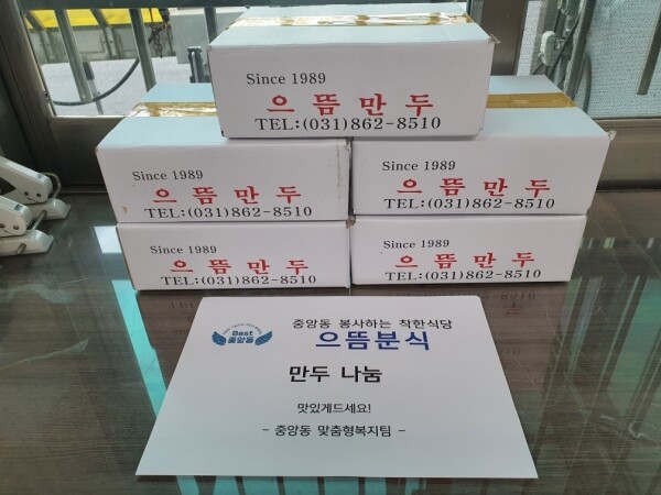 중앙동장은 “어려운 경제 상황에서도 봉사를 실천하시는 이상훈 대표님께 감사드리며 후원해주신 만두는 결식의 우려가 있거나 도움이 필요한 주민에게 잘 전달하겠다”고 밝혔다.