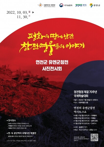 이번 사진전시회는 정전협정 70주년 기념행사를 앞둔 가운데 연천군이 행사 최적의 장소임을 알리고 유엔참전국과 참전용사를 기억하기 위해 마련됐다.