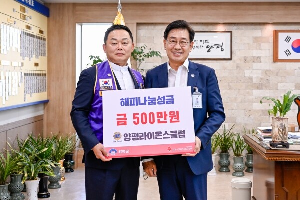 전진선 양평군수는 “지역의 발전과 소외계층을 위한 다양한 봉사활동을 추진하는 양평라이온스클럽 회장님과 회원님들께 감사드린다”며 “기탁된 성금은 수해피해를 입은 주민을 비롯한 어려운 이웃에게 고루 사용하겠다”고 전했다.