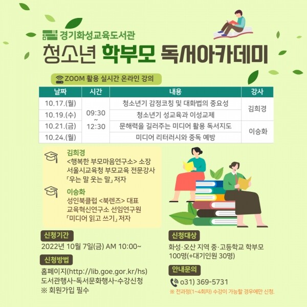 참여를 원하는 학부모는 7일부터 경기화성교육도서관 누리집에서 신청하면 된다.