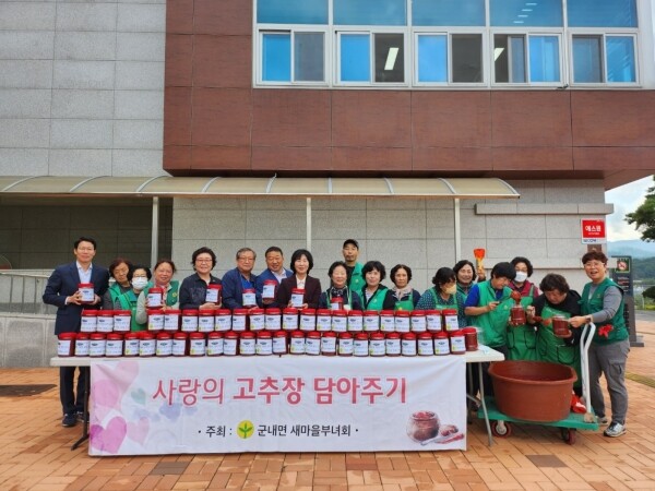 김수경 군내면장은 “따뜻한 이웃사랑을 실천해 주신 새마을부녀회 회원분들께 진심으로 감사드린다”며 “소외된 이웃들에게 희망과 사랑을 전하는 봉사활동에 행정적 지원을 아끼지 않겠다”고 말했다.