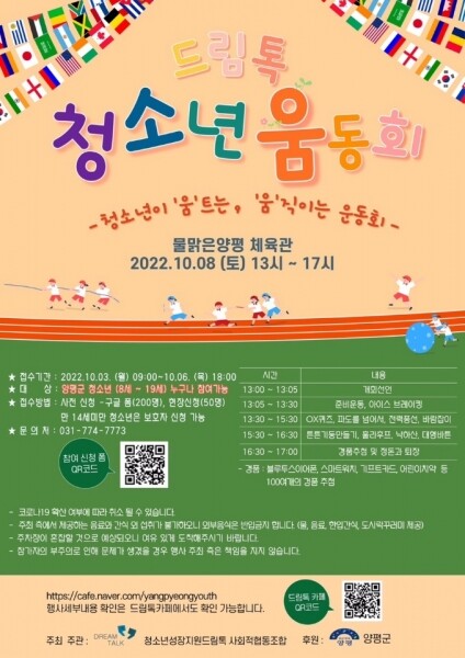 이번 운동회는 관내에서 청소년들을 위해 실시하는 첫 운동회로 지역 청소년들이 함께할 수 있는 화합의 장을 통해 서로 소통하고 신체적으로 건강하게 성장할 수 있는 기회가 될 것으로 기대된다.
