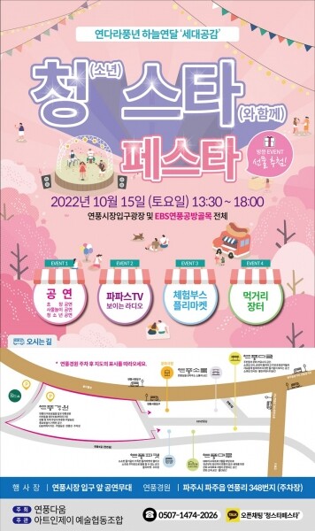 15일에 개최되는 1부 행사는 황정인 아트인제이 예술협동조합 대표가 기획한 ‘청 스타 페스타’를 테마로 진행되며 공방 체험 부스와 먹거리 장터, 공연 등 다양한 즐길 거리를 통해 문화 예술을 즐길 수 있는 축제 한마당이 될 것으로 기대한다.