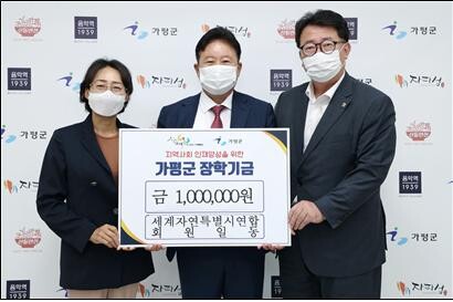지난 6일 세계자연특별시연합 회원 일동이 가평군에 장학금 100만원을 기탁했다.