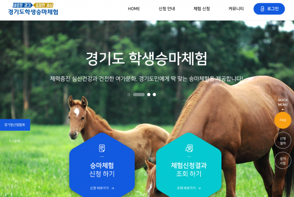 사업신청은 경기도학생승마체험 홈페이지에서 10월11일부터 14일까지 4일간 신청 가능하다.