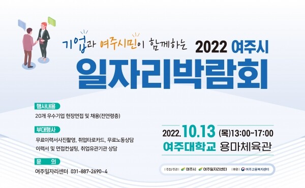 이번 행사는 여주시와 여주일자리센터가 주관하며 여주고용복지센터, 이천고용복지플러스센터가 참여한다.