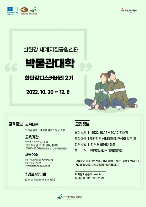 센터 관계자는 “한탄강은 유네스코에 인증된 수도권 제일의 생태관광 자원이다 이번 과정을 통해 한탄강의 생태가치를 새롭게 발견하는 시간이 될 것으로 기대한다”며 “생태교육과 해설활동에 관심이 있는 사람들의 많은 참여를 바란다”고 전했다.