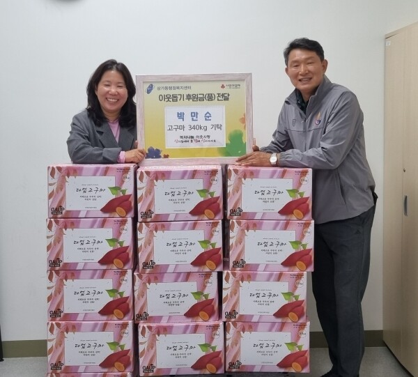 삼가동 행정복지센터에서 근무하고 있는 박만순 행정민원팀 부팀장은 지난 7일 본인이 직접 심고 기른 고구마 340㎏을 지역의 취약계층을 위해 동에 기탁했다.