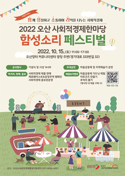 오후 2시부터 진행되는 기념식에서는 사회적 경제 활성화 유공자에 대한 표창과 지속 가능한 오산 사회적 경제를 위한 퍼포먼스가 진행된다.