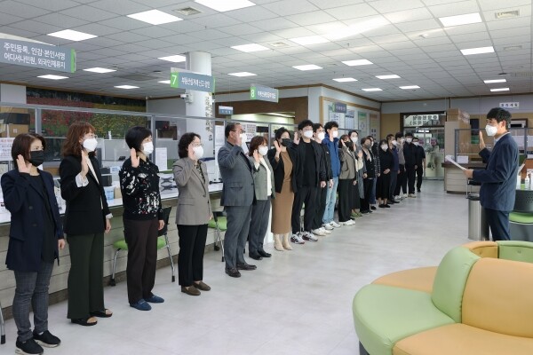 군은 친절교육 시 근무 시작 전, 종합민원실 근무자의 “친절선서문”을 낭독 및 선서를 통해 군민 중심의 민원서비스 제공의 마음가짐을 다시 한 번 되새길 수 있도록 했다.