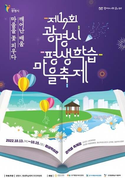 첫날인 10월 13일에는 광명극장에서 개막식과 평생학습포럼으로 축제의 시작을 알리고 둘째날인 14일에는 학습동아리 발표회와 문해학습자 발표회를 진행하며 마지막 날인 15일에는 폐막식을 끝으로 축제의 막이 내린다.