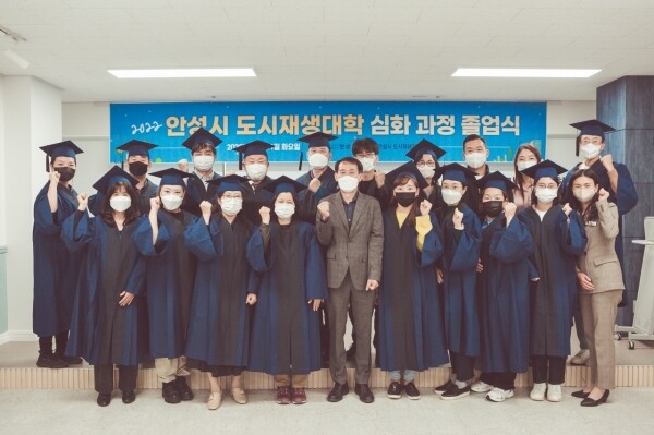 도시재생 현장 활동가로서 활동할 수 있는 주민 역량 강화를 위해 상반기에 진행한 기본과정에 이어 지난 8월 2일부터 총 10회의 수업으로 진행된 도시재생대학 심화과정은 이날 졸업식에서 교육실적 보고 및 수강생이 제작한 도시재생 홍보 동영상 발표의 시간을 갖고 정운길 안성시시민활동통합지원단장의 수료증 수여와 함께 기념촬영으로 마무리됐다.