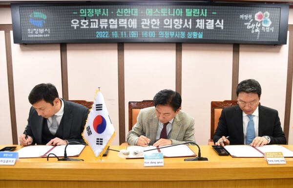 이번 체결식은 김동근 시장과 미하일 콜바르트 탈린시장, 강성종 신한대 총장이 참석했으며 각 기관 주요 관계자들 또한 참석해, 우호교류 의향서 체결을 축하했다.