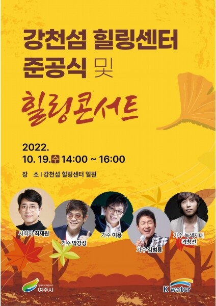콘서트는 강천섬 힐링센터 준공을 기념하고 강천섬의 아름다운 가을 풍경을 시민들과 감상하는 자리가 될 예정이다.