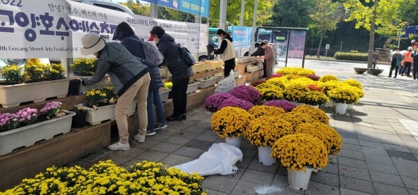 대화동 행정복지센터 주변, 가와지 광장 내, 대화동 53블럭 일대에 국화꽃 500본을 식재해 깨끗하고 정돈된 화단을 조성했다.