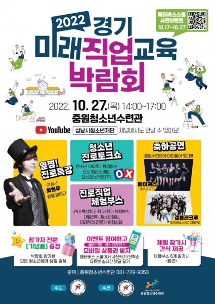 ‘2022. 경기미래직업교육박람회’는 경기도교육청에서 주최하고 경기도성남교육지원청과 성남시청소년재단 중원청소년수련관이 공동 주관하는 진로 박람회다.