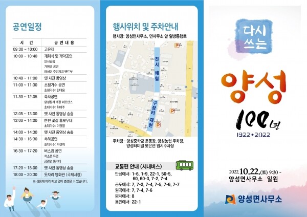 지난 1922년 일제에 의해 공식적으로 양성시장이 폐시된 지 정확히 100년 만에 양성에 다시 장이 서는 것으로 이번 행사는 역사 속으로 사라져 버린 구장터를 재현하고 다시 양성의 중흥을 도모하기 위해 마련됐다.