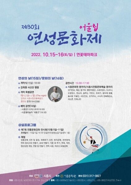 또한, 15일 오후 6시부터 진행되는 개막식에는 김덕수 사물놀이와 시흥시립전통예술단의 콜라보 특별공연이, 16일 오후 6시에 진행되는 폐막식에는 시흥윈드오케스트라 및 시흥월미농악의 대동굿 특별공연이 흥겹게 이어진다.