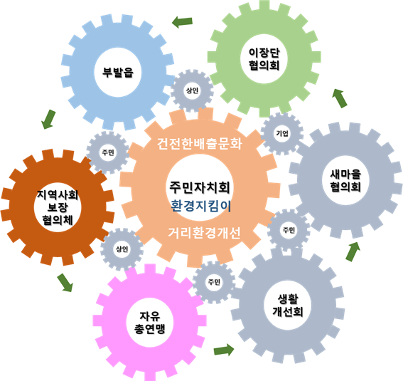 이장단협의회, 주민자치회, 새마을협의회 등 6개 사회단체의 선두 역할로 시작해 지역상인과 주민의 적극적인 참여를 이끌어 낼 것이다.