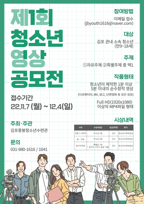 작품 제출은 11월 7일 ~ 12월 4일로 김포시에 거주하거나 재학하는 만 9세~18세 청소년 누구나 응모할 수 있다.