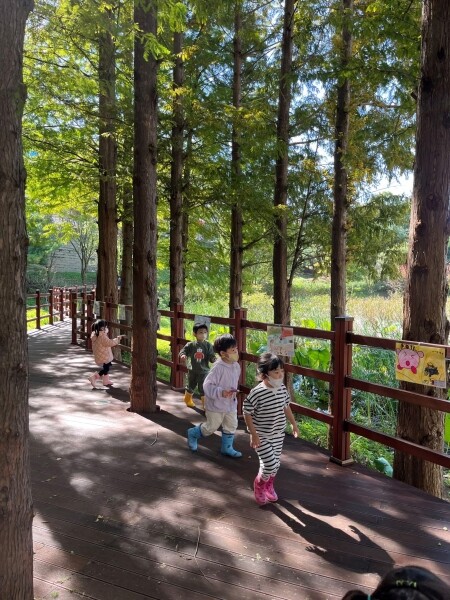동은 어린이들의 작품 300점을 올해 새로 조성한 함양지 데크 둘레길에 전시, 야간조명과 어우러지는 볼거리를 제공한다.