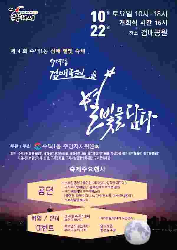 수택1동 주민자치위원회가 주최·주관하는 이번 행사는 수택E구역 재개발로 사라져가는 수택1동의 옛 모습을 기억하고 그 공간을 추억에 남기고자 수택1동의 옛 모습이 담긴 연도별 사진 전시와 함께 향토 해설가와 지역주민이 수택1동 변천사에 대해 ‘스토리텔링 콘서트’ 형식으로 진행될 예정이다.