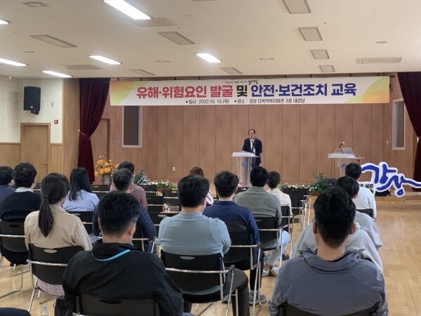 이번 교육은 ‘중대재해 처벌법’ 및 ‘산업안전보건법’에 따라 유해·위험 요인의 안전·보건 조치 이행 방안에 대한 주제로 부서 및 읍면의 시설물 담당자 등 50여명이 참석한 가운데 진행됐다.