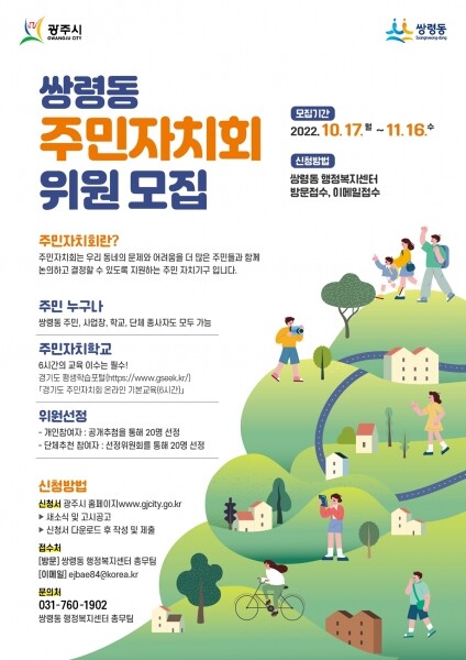 모집 기간은 오는 11월 16일까지며 광주시 홈페이지에 게시된 신청서를 작성해 쌍령동 행정복지센터 방문 및 이메일로 제출하면 된다.