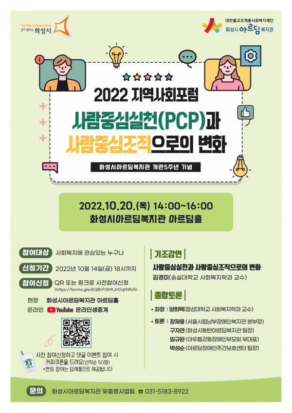 이현호 화성시아르딤복지관장은 “이번 포럼을 계기로 지역사회 전반에 사람중심실천에 대한 이해와 관심을 높여 발달장애인의 자기결정권을 보장하고 지역공동체를 만들 수 있길 기대한다”고 말했다.
