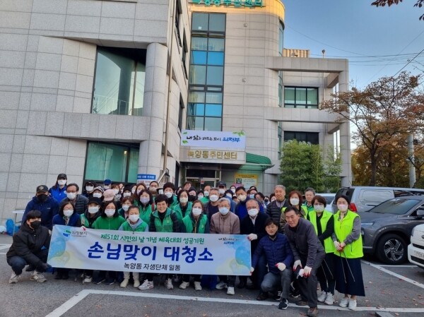봄과 가을에 실시하는 대청소도 있지만, 특히 이번 행사는 체육대회 성공을 기원하고자 하는 주민들의 작은 염원이 행사의 시발점이 됐다는 점이 더욱 의미가 있으며 새로 부임한 녹양동장을 비롯한 직원의 참여로 민관이 하나 되는 뜻깊은 시간이었다.