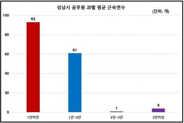 짧은 부서별 근무 연수로 업무에 대한 전문성 결여 및 성남시민의 행정복지서비스 수준이 저하될 수 있다고 말했다.