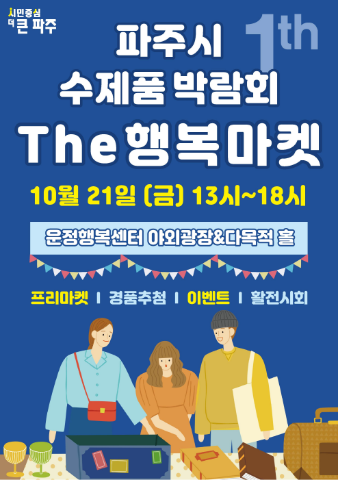 제1회 파주시 수제품 박람회는 관내 수제품 소상공인을 발굴하고 상권을 활성화시키기 위해 마련됐으며 이날 박람회에는 관내 27개 수제품 소상공인 업체가 참가해 창작한 수제품을 전시·홍보·판매할 예정이다.