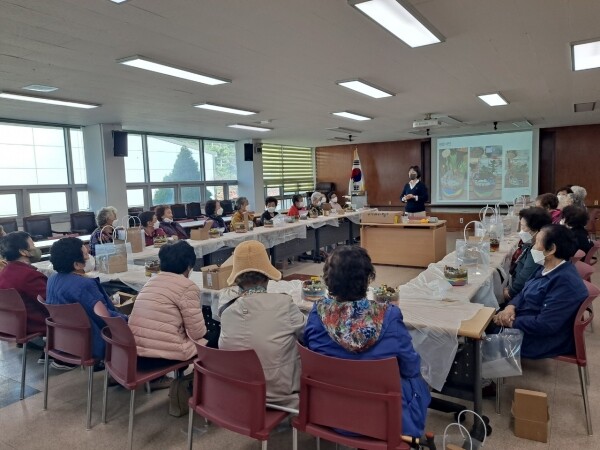 백암면과 모현·남사읍 어르신들은 밀폐된 유리병 안에 작은 식물을 재배하는 원예의 한 종류인 ‘테라리움 만들기’를 배우고 원삼면 어르신들은 관내 한 체험농장에 방문해 귤 따기와 피자 만들기 등을 체험한다.