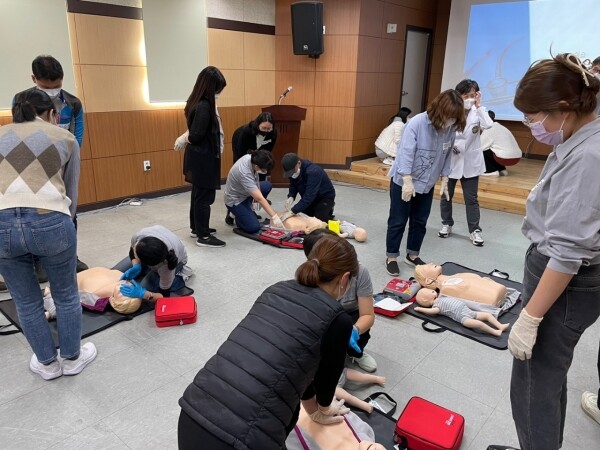 특히 하임리히법, 자동 심장충격기 점검 및 사용방법, 심폐소생술 시 적정 횟수 등 실생활에 필요한 응급처치 방법에 대한 강의와 실습을 병행했다.