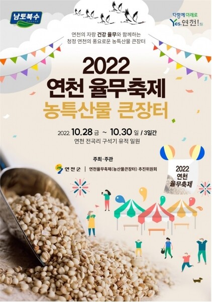 이번 축제는 ‘연천의 자랑 건강 율무와 함께하는 풍요로운 농특산물 큰 장터’라는 슬로건으로 진행될 예정이다.