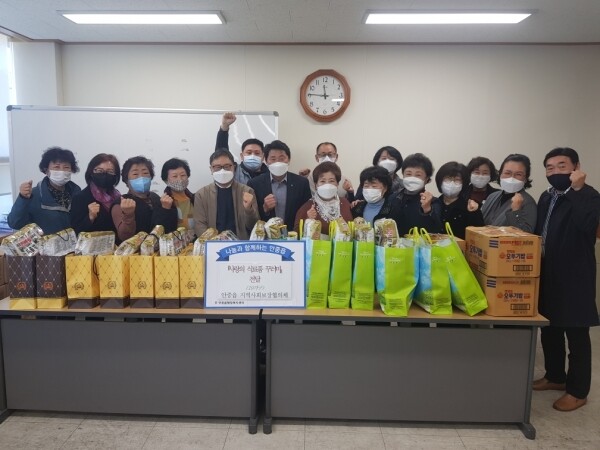 이번 ‘사랑의 식료품 꾸러미 전달’ 행사는 관내 복음보청기 평택안중점의 후원을 통해 진행됐으며 안중읍 지역사회보장협의체 위원들이 식료품 꾸러미를 만들어 대상 가구에 직접 방문해 온정을 나눴다.