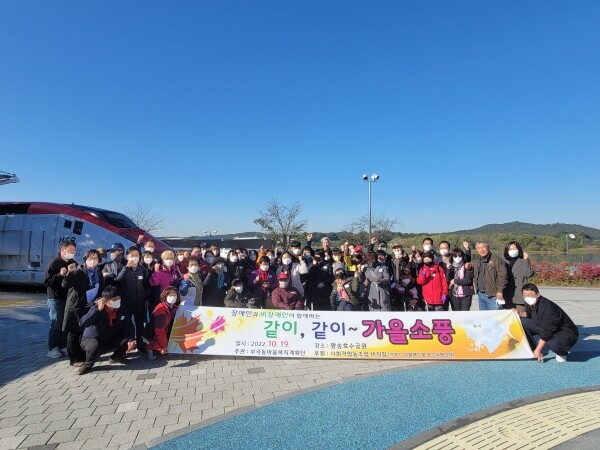 가을소풍은 장애인과 비장애인이 한 조를 이뤄 레일바이크를 타고 점심식사를 함께하며 서로 소통하는 즐거운 추억을 만들었다.