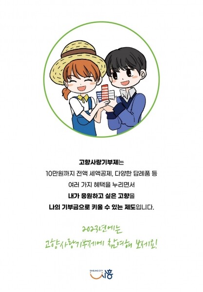 시 관계자는 “고향사랑기부제 시행이 지방재정 확충 및 지역 홍보, 답례품 제공을 통한 지역경제 활성화에 기여할 것으로 기대된다”며 “내년 1월부터 시행되는 제도인 만큼, 차질 없이 제도가 시행될 수 있도록 준비할 예정”이라고 밝혔다.