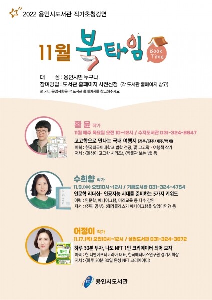 올해 마지막으로 운영하는 북타임에는 3명의 작가를 만날 수 있다.