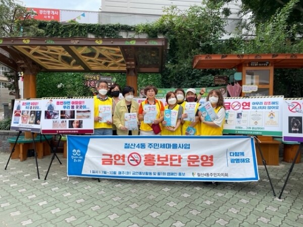 한성진 철산4동 주민자치회장은 “철산4동은 특히 어린아이들을 둔 가정이 많아 초등학교를 중심으로 사업을 계획했다”며 “이번 캠페인으로 많은 주민이 다시 한 번 금연을 다짐해 더 건강한 철산4동이 될 수 있는 계기가 되길 바란다”고 소감을 밝혔다.