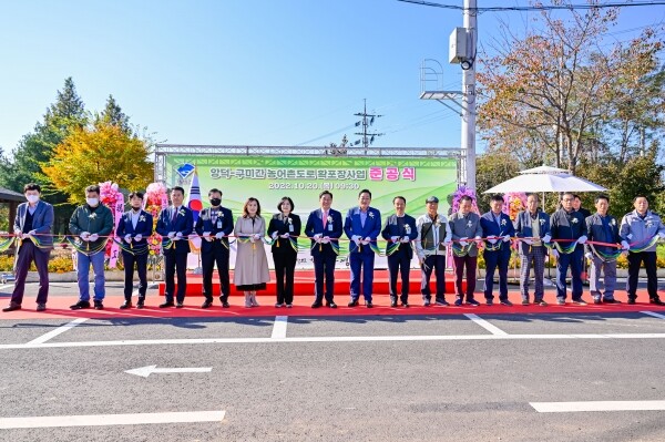 이번에 준공된 농어촌도로는 군비 42억원이 투입되어 총연장 1.75km 폭 7m의 도로를 폭 10.5m로 확장하며 부분 개량 공사를 시행한 사업으로 2020년부터 2022년 상반기까지 선형 개량과 자전거도로 분리 등의 공정을 추진해왔다.