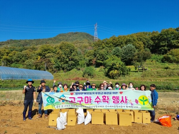 한구현 양서면장은 “지난 여름, 양평이 재난지역으로 선포될 정도로 유난히 비가 많이 와서 걱정했는데 다행히 위원님들의 고생이 헛되지 않도록 잘 자랐다”며 “위원님들의 노고가 담긴 고구마가 잘 판매되어 어려운 이웃을 위한 소중한 기금이 되길 바란다”고 전했다.