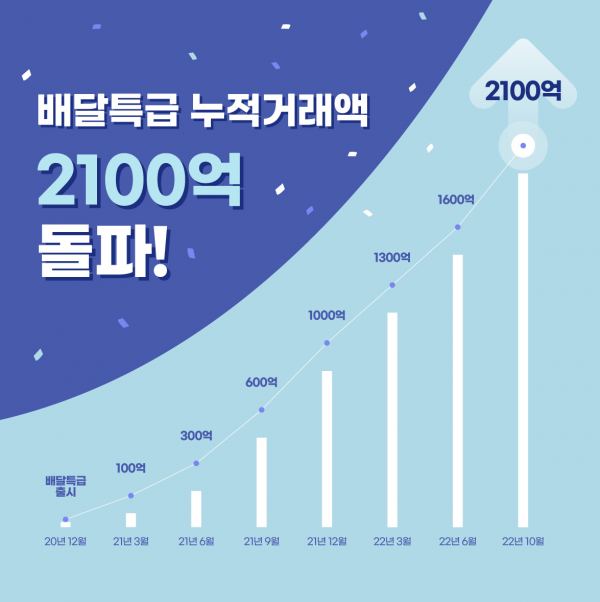 배달특급은 지난 9월 25일 서비스 만 2년이 되기 전에 누적 거래액 2,000억원 기록을 달성하며 꾸준히 성장세를 입증해오고 있다.
