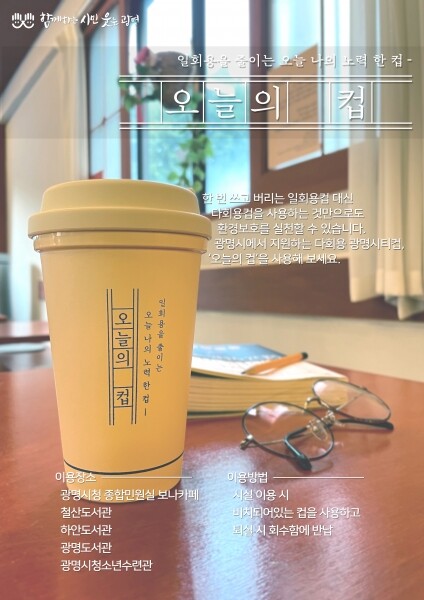 이번 시범사업은 시민의 이용이 많은 공공기관부터 일회용품 사용 저감을 실천해 민간부문까지 친환경 소비문화를 확산하기 위해 추진되며 광명시청 철산도서관 하안도서관 광명도서관 광명시청소년수련관 등 5개소에서 운영된다.